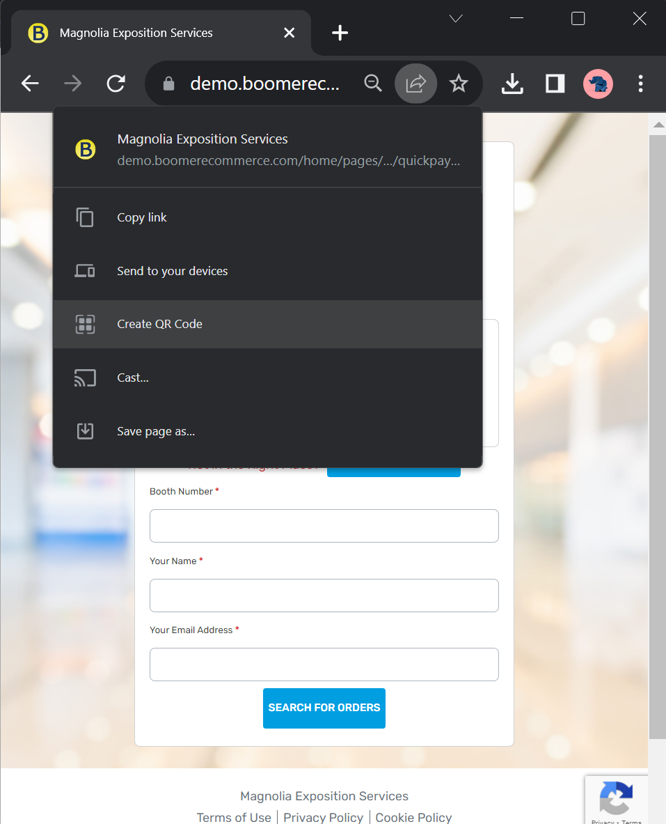 After copying the URL from the Dashboard as shown above, you can use any QR code generator to create the QR Code that you can then use on signage on the show floor. Some are free, and some have a fee based on how many are created per month. If you want to do your research, just search the internet for "QR Code Generator" or look at extensions that might be available for the browser you use. For example, here is a result of a search for QR code extensions in Firefox: