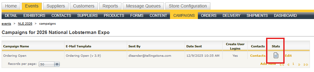 - A new icon in the Campaigns grid launches deliverability statistics about the campaign. Note: Detailed statistics will be available only to Sender Score Service customers.