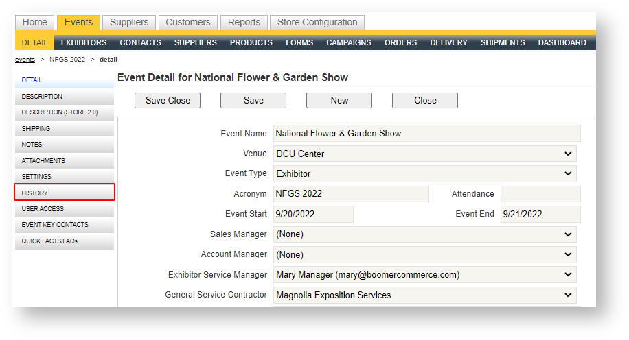 The audit trail tracks changes to key fields in an event, which can be accessed using the menu option in the Event Detail area: