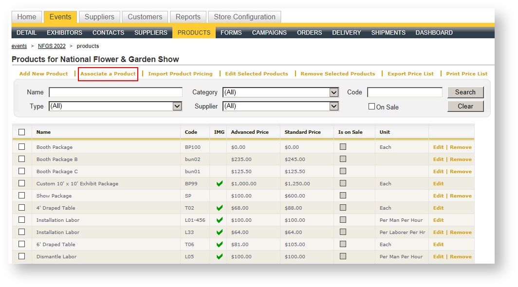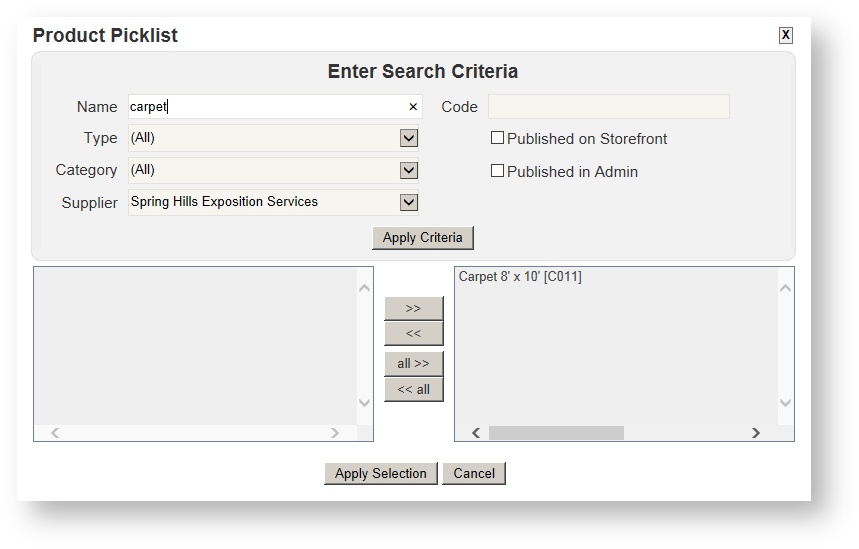 After moving the product(s) to the right hand side of the Picklist and clicking Apply Selection, your product will become part of your event.