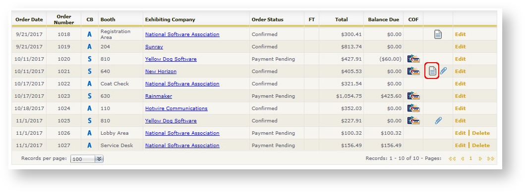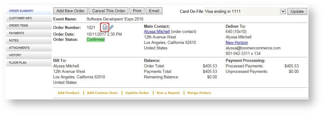 Attachments may also be accessed by clicking on the Paperclip icon in the Orders grid or on the Paperclip icon from within the Order Summary screen: