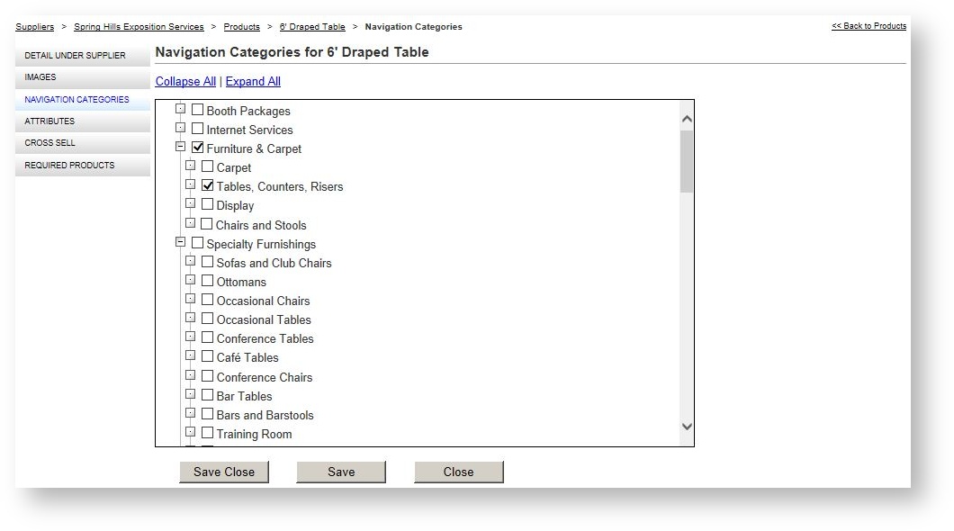 - From the Product's left vertical navigation menu, choose "Navigation Categories".