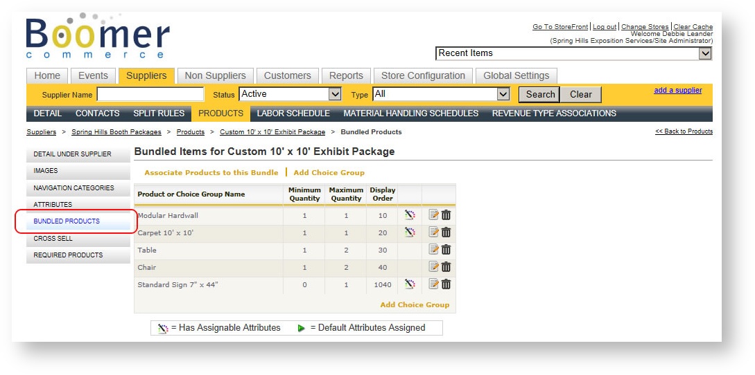 If the product has been marked as a bundle, an additional menu appears down the left hand side. This allows the user to define the child products to be connected to the parent product:
