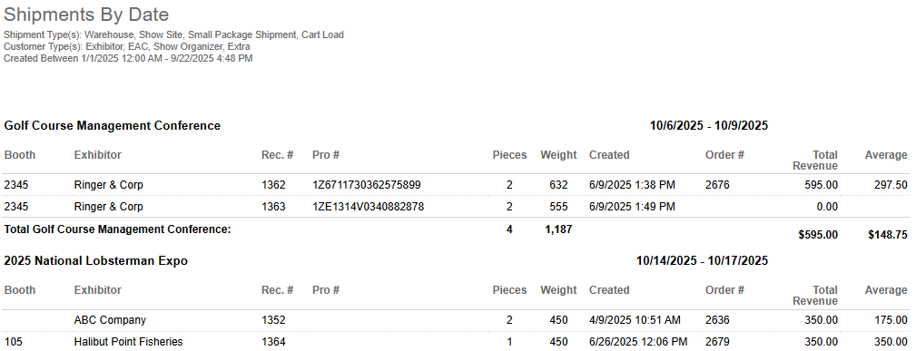Shipments By Date returns details for shipments created within a date range. By using the Order Status parameter, the report is useful for seeing if you have shipments that are not in orders.