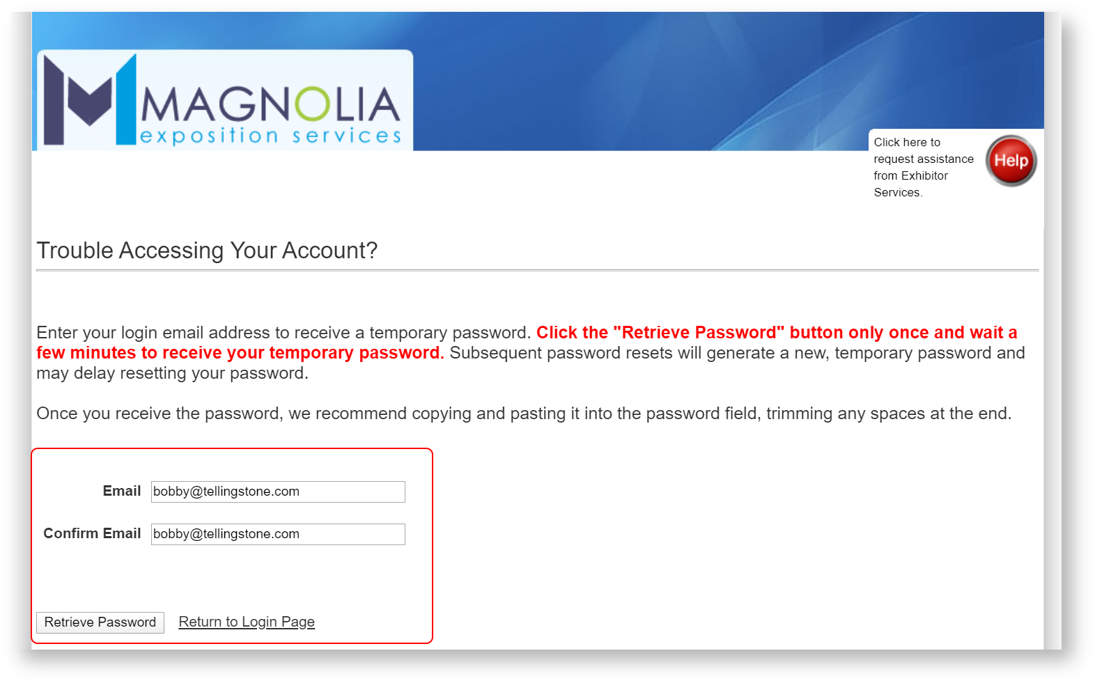 2. Confirm the email and click "Retrieve Password".