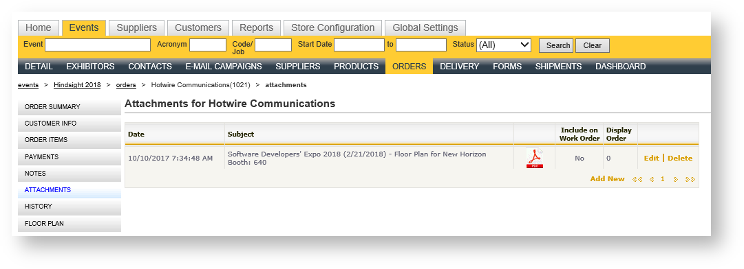 After the customer submits his/her order, the floor plan becomes an attachment in the order: